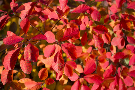 Vivid red leaves bush autumnal