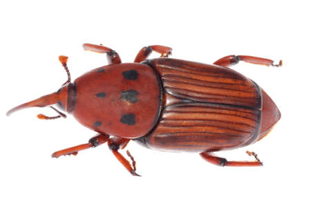 Female Red palm weevil, Rhynchophorus ferrugineus, 3 weeks old, in front of white background