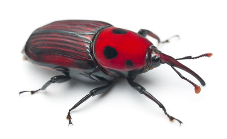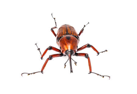 Closeup Red palm weevil, Red stripes palm weevil, Asian palm weevil or Sago palm weevil, isolated on white background.