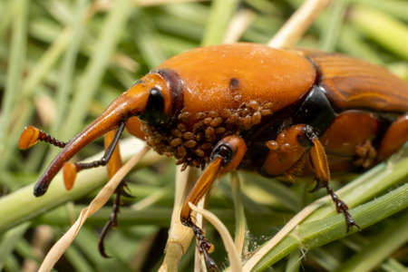 The red weevil Rhynchophorus ferrugineus A species of beetle of the weevil family, 1 native to tropical Asia. It is a large weevil, between two and five centimeters. Its rusty reddish color makes it