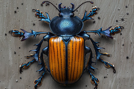 Explore this vibrant macro image of a detailed beetle showcasing vivid colors and intricate patterns, perfect for educational and artistic purposes in nature photography.
