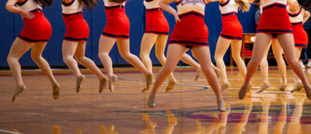 Kamenskoye, Ukraine - October 14, 2018: Championship of the city of Kamenskoye in cheerleading among duets and teams, young cheerleaders perform at the city cheerleading championship