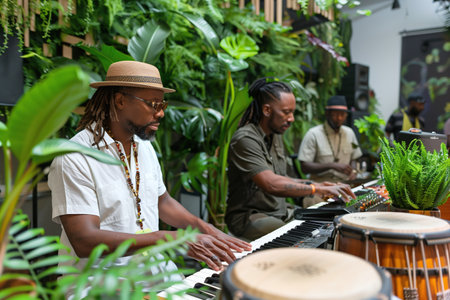 Filling the evening with their awesome beats. Shot of a group of musical performers playing together.