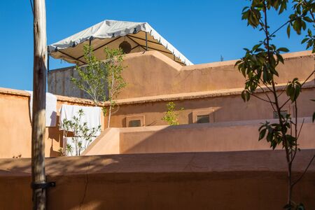 Architectural details of a pretty hotel in the town of Zagora in Morocco