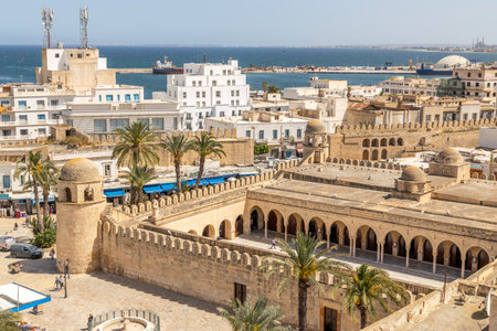 Great Mosque of Sousse Overlooking the Harbor and Blue Sea, Tunisia