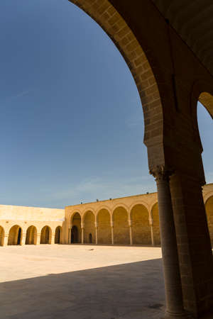 Ribat of Monastir, Islamic defensive structure, located in Monastir, Tunisia. Picturesque view from arch
