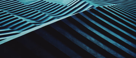 Ultra wide image made of dark gray monochromic 3D curved abstract background image made of plain spotted patterns with shadow perspectives. illustration and black
