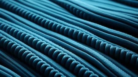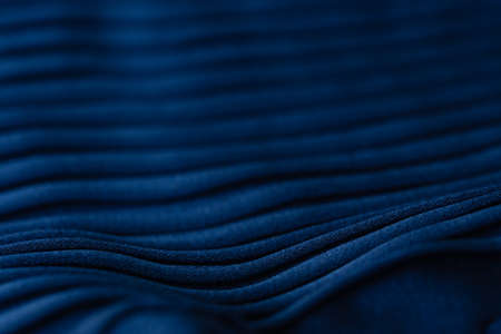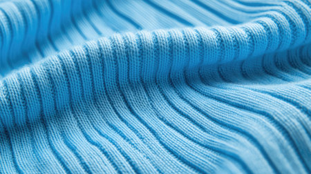 Close-up view of soft blue fabric showcasing textured waves and gentle lines. Ideal for fashion, interiors, or design projects emphasizing comfort and modern style.