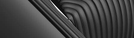 Black glossy metallic surface with curved lines. Metal, plastic or silk background. 3d rendering. High resolution.