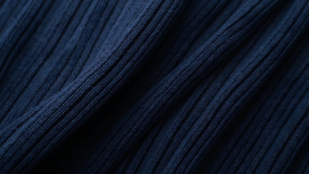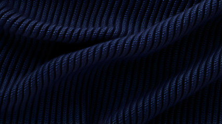Detailed close up of navy blue ribbed knit fabric with vertical lines for a textured look