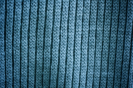Knitted fabric of blue scarf, sweater with beautiful texture with patterns and loops. Abstract background.