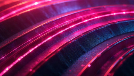 Abstract metallic curves reflecting pink light in a dark atmosphere