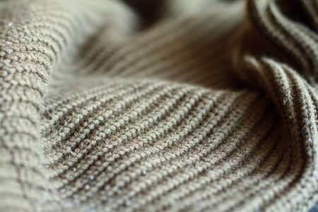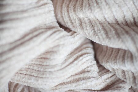 Wool fabric texture close up background. Cozy style cloth. Wavy folds material