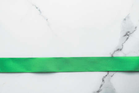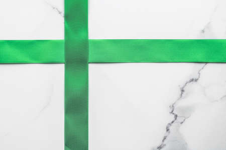 Decorative, birthday and art branding concept - Green silk ribbon and bow on marble background, St Patricks day present or Christmas glamour gift decor for luxury digital brand, holiday flatlay design
