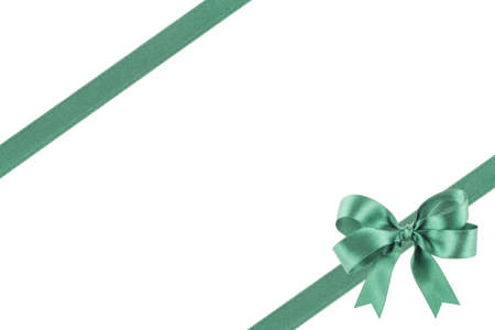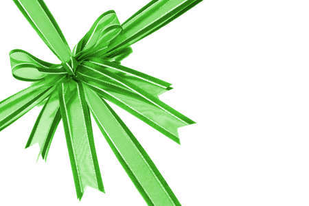 Green ribbon bow isolated on white background