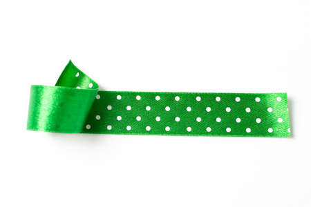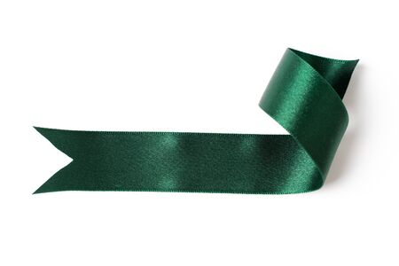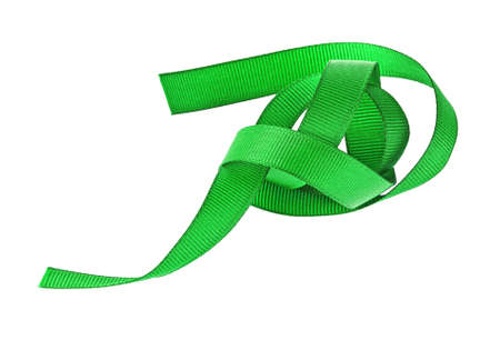 Green satin ribbon on a white background. Isolated with clipping path