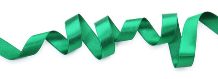 Shiny satin ribbon in green color isolated on white background close up