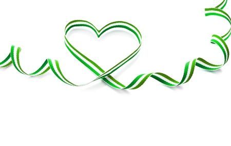 Green Stripe Ribbon Tape Shape Heart Valentine s Day isolated on white background