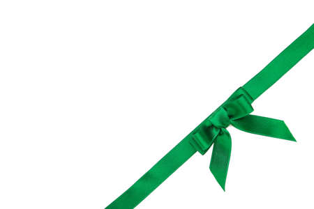 Green ribbon with a bow on white background
