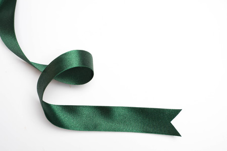 Green ribbon on white background