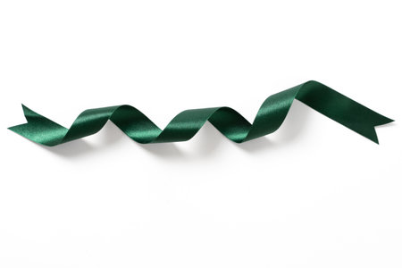 top view of satin green decorative curved ribbon on white