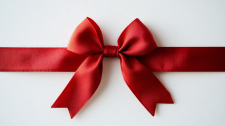 A vibrant red bow carefully tied with precision, displayed on a spotless white background. Ideal for use in holiday themes, gift-giving designs, greeting cards, party decorations, branding, and
