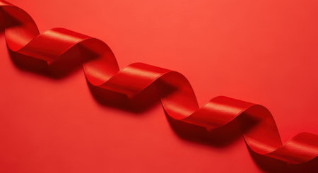 A close-up shot of a vibrant red ribbon gracefully curled against a matching red backdrop, creating a visually appealing design.