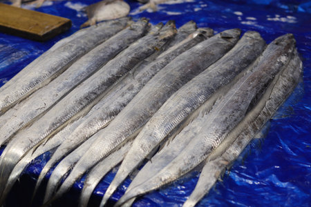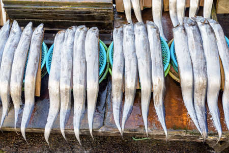 famous Jeju hairtail fish on display for sale at Jeju Dongmun market