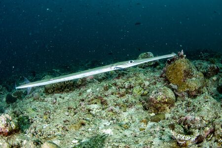 Amami Oshima, Japan - June 19, 2019: Bluespotted cornetfish or smooth cornetfish or smooth flutemouth or Fistularia commer sonii at You Beach in Amami Oshima, Japan
