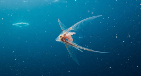 deep-sea creatures fin fluttering in the water, with glowing blue light, created with generative ai