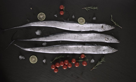 a basket of fresh hairtail is neatly arranged