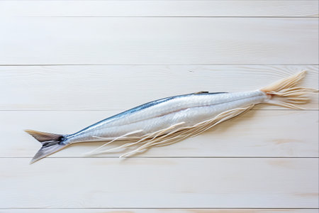 Exploring the Delicacy of Ribbonfish: A Presentation Set on a White Wooden Background with Free Space - AR 3:2