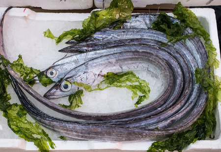lepidopus caudatus, pesce bandiera in italian, at fish market,Naples