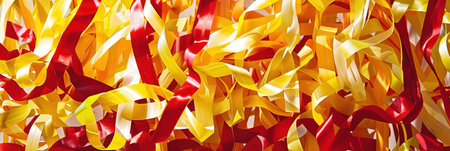 Red, yellow and white ribbons background. Festive decoration.