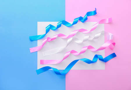 Paper sheet with ribbons on color background. Concept of transgender
