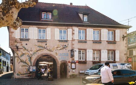 ALSACE WINE REGION, FRANCE - SEP 20, 2019: Traditional restaurant and apartments in Beblenheim village which is located on Alsatian Wine Route, France.