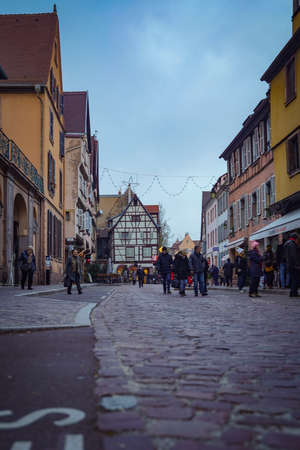 Colmar, France - 18 August, 2014: old town street. Colmar is the most popular tourist destination in France, founded in the 9th century.