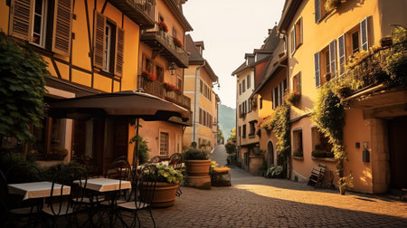 street scenery in Mittelbergheim, a village of a region in France named Alsace