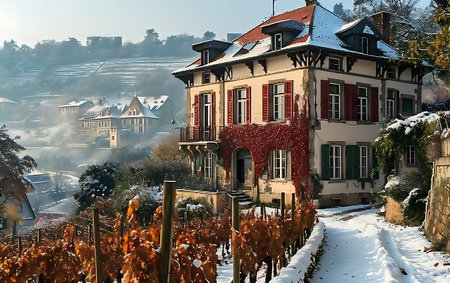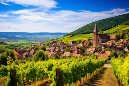 The Enchanting Vista: Captivating Riquewihr Village, France, from Majestic Vineyard Hill