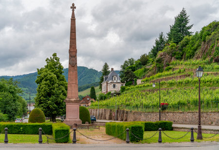 Ribeauville, France - July 5, 2023: Ribeauville is a tourist French town along wine route in Alsace in the Haut-Rhin department in the Grand Est region.