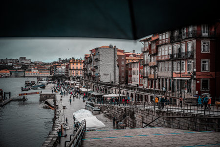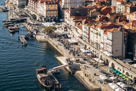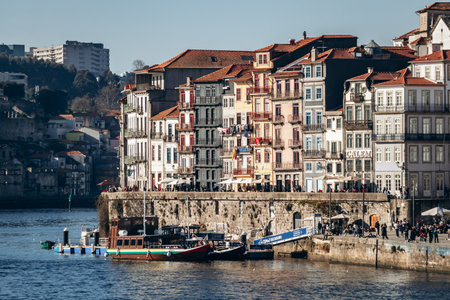 Porto, Portugal - December 28, 2024: The famous and picturesque Ribeira district, known for its colorful houses and vibrant riverside atmosphere