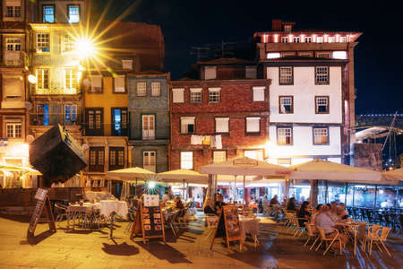 Porto, Portugal - September 27, 2018: Porto, Nightlife on the crowded promenade of the Douro River with cafes and restaurants in Porto