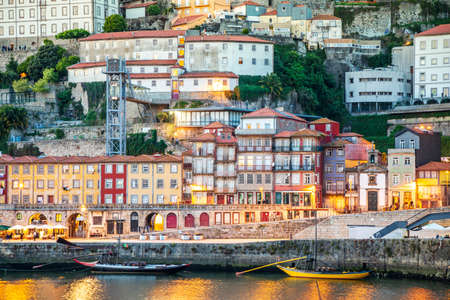 Cityscape of the city of Porto, Douro river with its old boat and its typical colored houses on the water's edge. Portugal. Europe.