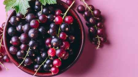 Discover a beautiful arrangement of fresh red and black currants in a bowl. Perfect for culinary creations, healthy snacks, or vibrant dessert toppings.