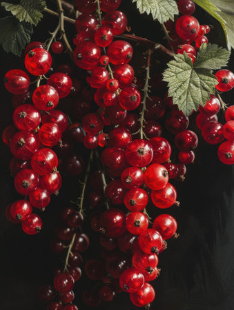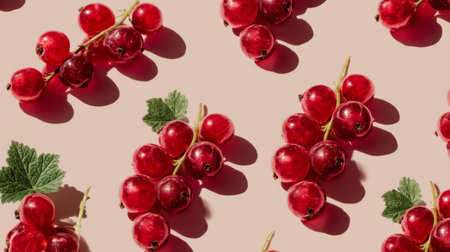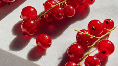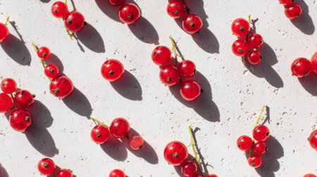 A vibrant arrangement of fresh red currants captures the essence of summer. The bright color and delicate shadows create a stunning visual for culinary inspiration.