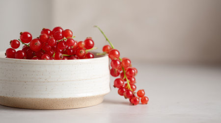 A stunning arrangement of fresh red currants against a soft light background, showcasing their vibrant color and natural beauty, perfect for healthy cooking and styling.