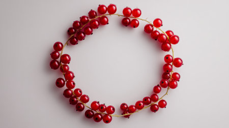 A stunning arrangement of red berries crafted into a simple wreath shape, perfect for creative projects, seasonal decoration, or culinary presentation ideas.