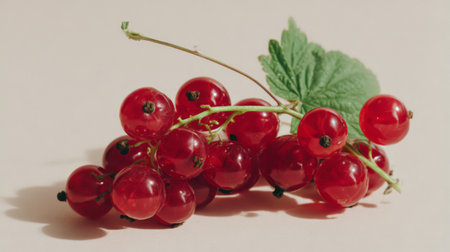 A close-up image of fresh red currants resting on a soft cream background, highlighting their vibrant color and texture, perfect for culinary and healthy food promotions.