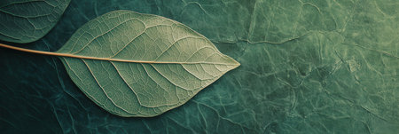 Texture of green leaf close-up image. Natural background, leaf fibers. Copy, empty space for text.