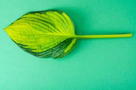Green leaf on textured white background, nature concept